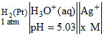 H2(Pt) (1 atm) || | Ag+(xM) | Ag
