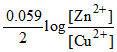 Zn + Cu2+ (aq) ⇋ Cu + Zn2+ (aq) Reaction quotient is Q =