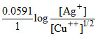 A cell Cu | Cu++ || Ag+ | Ag initially contains 2M Ag+ and 2M Cu++ ions in 1L electrolyte. The change in cell potential after the passage of 10 amp current for 4825 sec is :