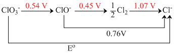 ClO3- + 2H2O + 4e → ClO- + 4OH- ; ᐃG1o