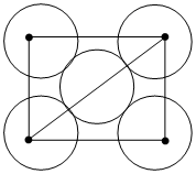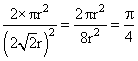 The packing efficiency of the two-dimensional square unit cell shown below is
