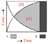 In the following graphical representation for the reaction A → B there are two types of regions :