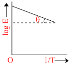 Graph between log k and 1/T (k is rate constant in s-1 and T is the temperature in K) is a straight line. As shown in figure if OX = 5 and slope of the line = -