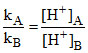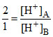A reaction is catalysed by H+ ion;and in the rate law the dependence of rate is of first order with respect to the concentration of H+ ions, in presence of HA rate constant is 2 × 10-3 min-1 and in presence of HB rate constant is 1 × 10-3 min-1. HA and HB have relative strength as :