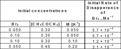 The bromination of acetone that occurs in acid solution is represented by