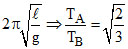 Pendulum A is physical pendulum made from a thin rigid and uniform rod whose length is l. One end of this rod is attached to the ceiling by a frictionless hinge so that rod is free to swing back and forth. pendulum B is a simple pendulum whose length is also l. The ratio