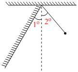 A simple pendulum of length 1 m is allowed to oscillated with amplitude 2o. It collides elastically with a wall inclined at 1o to the vertical. Its time period will be : (use g = π2)