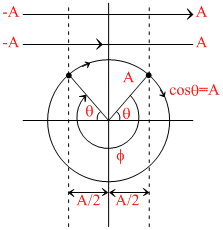 Two bodies performing S.H.M have same amplitude and frequency. Their phase at a certain instant are as shown in the figure. The phase difference between them is
