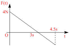 A block of mass 2 kg is free to move along the x-axis. It is at rest and from t = 0 onwards it is subjected to a time-dependent force F(t) in the x direction. The force F(t) varies with t as shown in the figure. The kinetic energy of the block after 4.5 seconds is