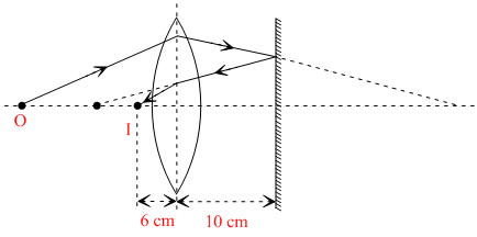 A biconvex lens of focal length 15 cm is in front of a plane mirror. The distance between the lens and the mirror is 10 cm. A small object is kept at a distance of 30 cm from the lens. The final image is