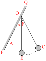 A ball is suspended by a thread of length L at the point O on the well PQ which is inclined to the vertical through an angle α. The thread with the ball is now displaced through a small angle β away from the vertical and the wall. If β < α, then time period of oscillation of the pendulum will be -