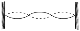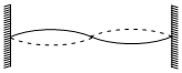 String I and II have identical lengths and linear mass densities, but string I is under greater tension than string II. The accompanying figure shows four different situations, A to D, in which standing wave patterns exist on the two strings. In which situation it is possible that strings I and II are oscillating at the same resonant frequency ?