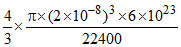 Assuming that O2 molecule is spherical in shape with radius 2(Ao), the percentage of the volume of O2 molecules to the total volume of gas at S.T.P. is :
