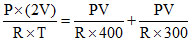 0.5 × 2V = 0.7 × 0.0821 × 300