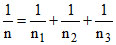 A string is cut into three parts, having fundamental frequencies n1, n2 and n3 respectively. Then original fundamental frequency ′n′ related by the expression as (other quantities are identical) : -