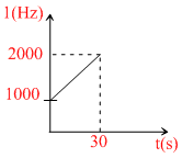 A detector is released from rest over height h a source of sound of frequency f0 = 103 Hz. The frequency observed by the detector at time t is plotted in the graph. The speed of sound in air is (g = 10 m/s2)