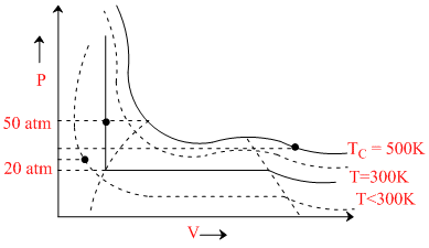 D.at 300 K < T < 500 K, P > 50 atm, the state will be liquid.