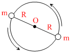 Two particles of equal mass m go round a circle of radius R under the action of their mutual gravitational attraction. The speed of each particle is