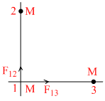 Three identical point masses, each of mass 1 kg lie in the x-y plane at points (0, 0) (0, 0.2m) and (0.2m,0). The gravitational force on the mass at the origin is : -