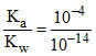 A certain weak acid has a dissociation contant 1.0 × 10-4. The equilibrium constant for its reaction with a strong base is:
