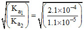Ka for formic acid and acetic acid are 2.1 × 10-4 and 1.1 × 10-5 respectively. The relative strenth of acids is: