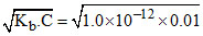 At 25oC Kb for BOH = 1.0 × 10-12 . 0.01 M solution of BOH has [OH-]: