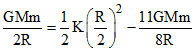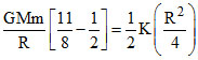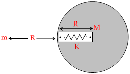 A small ball of mass ′m′ is released at a height ′R′ above the Earth surface, as shown in the figure. If the maximum depth of the ball to which it goes is R/2 inside the Earth through a narrow grove before coming to rest momentarily. The grove, contain an ideal spring of spring constant K and natural length R, the value of K is (R is radius of Earth and M mass of Earth)