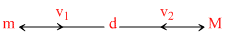 Masses and radii of Earth and Moon are M1, M2 and R1, R2 respectively. The distance between their centre is ′d′. The minimum velocity given to mass ′M′ from the mid point of line joining their centre so that it will escape : -