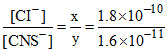 KSP (AgCI) = [Ag+] [CI-] = (x + y) x = 1.8 × 10-10