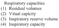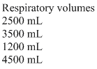 Listed below are four respiratory capacities (1 - 4) and four jumbled respiratory volumes of a normal human adult