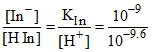 Let the colour of the indicator HIn (colourless) will be visible only when its ionised form (pink) is 25% or more in a solution. Suppose HIn (pKa = 9.0) is added to a solution of pH = 9.6 predict what will happen. (Take log 2 = 0.3)