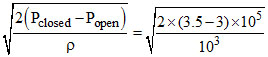 The pressure of water in a water pipe when tap is opened and closed is respectively 3 × 105 Nm-2 and 3.5 × 105 Nm-2. With open tap, the velocity of water flowing is