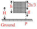 An open vessel full of water is falling freely under gravity. There is a small hole in one face of the vessel, as shown in the figure. The water which comes out from the hole at the instant when hole is at height H above the ground, strikes the ground at a distance of x from P. Which of the following is correct for the situation described?