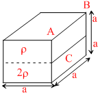 A cuboid (a × a × 2a) is filled with two immiscible liquids of density 2ρ & ρ as shown in the figure. Neglecting atmospheric pressure, ration of force on base & side wall of the cuboid is