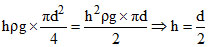 To what height h should a cylindrical vessel of diameter d be filled with a liquid so that the total force on the vertical surface of the vessel be equal to the force on the bottom : -