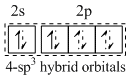 Four electron pairs - two form covalent and two form coordinate bonds. Two F- ions each donate an electron pair in to an empty sp3 hybrid orbital forming two coordinate bonds.