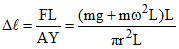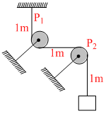 A copper wire of length 3m and area of cross -section 1 mm2, passes through an arrangement of two frictionless pulleys, P1 and P2. One end of the wire is rigidly clamped and a mass of 1 kg is hanged from the other end. If the Young′s modulus for copper is 10 × 1010 N/m2, then the elongation in the wire is -