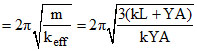 One end of a long metallic wire of length L area of cross section A and Young′s modulus Y is tied to the ceiling. The other end is tied to a mass less spring of force constant k. A mass m hangs freely from the free end of the spring. It is slightly pulled down and released. Its time period is given by -
