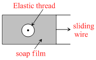 The figure shows a soap film in which a closed elastic thread is lying. The film inside the thread is pricked. Now the sliding wire is moved out so that the surface area increases. The radius of the circle formed by elastic thread will :
