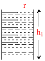 A capillary of the shapes as shown is dipped a liquid. Contact angle between the liquid and the capillary is 0o and effect to liquid inside the meniscus is to be neglected. T is surface tension of the liquid, r is radius of the meniscus, g is acceleration due to gravity and r is density of the liquid then height h in equilibrium is :
