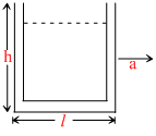 A U-tube of base length ′l′ filled with same volume of two liquids of densities ρ and 2ρ is moving with an acceleration ′a′ on the horizontal plane. If the height difference between the two surfaces (open to atmosphere) becomes zero, then the height h is given by -