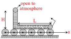 A narrow tube completely filled with a liquid is lying on a series of cylinder as shown in figure. Assuming no sliding between any surface, the value of acceleration of the cylinders for which liquid will not come out of the tube from anywhere is given by
