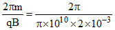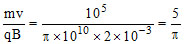 = π × 1010 C kg-1 is projected from the origin along the positive x - axis with a velocity of 105 ms-1 in a uniform magnetic field = - 2 × 10-3 tesla. Choose correct alternative(s