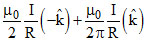 An infinitely long straight conductor is bent into the shape as shown in figure. It carries a current I ampere and the radius of the circular loop is r meter. Then the magnetic induction at the centre of the circular part is : -