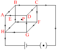 A steady current is set up in a cubic network composed of wires of equal resistance and length d as shown in figure. What is the magnetic field at the centre P due to the cubic network ?
