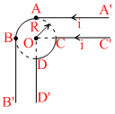 All straight wires are very long. Both AB and CD are arcs of the same circle, both sub tending right angles at the centre O. Then the magnetic field at O is -