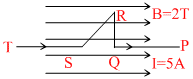 A wire PQRST carrying current I = 5A is placed in uniform magnetic field B = 2T as shown in fig. If the length of part QR = 4 cm and SR = 6 cm then the magnetic force on SR edge of the wire is : -