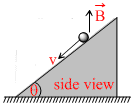 A conducting rod of length l and mass m is moving down a smooth inclined plane of inclination θ with constant velocity v in fig. A current I is flowing in the conductor in a direction perpendicular to paper inwards. A vertically upward magnetic field exists in space. Then magnitude of magnetic