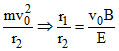 An electron is projected with velocity v0 in a uniform electric field E perpendicular to the field. Again it is projected with velocity v0 perpendicular to a uniform magnetic field B. If r1 is initial radius of curvature just after entering in the electric field and r2 is initial radius of curvature just after entering in magnetic field then the ratio r1/r2 is equal to