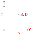 A long straight wire carries a current along the x-axis. Consider the points A(0, 1, 0), B(0, 1, 1), C(1, 0, 1) and D(1, 1, 1). Which of the following pairs of points will have magnetic fields of the same magnitude -